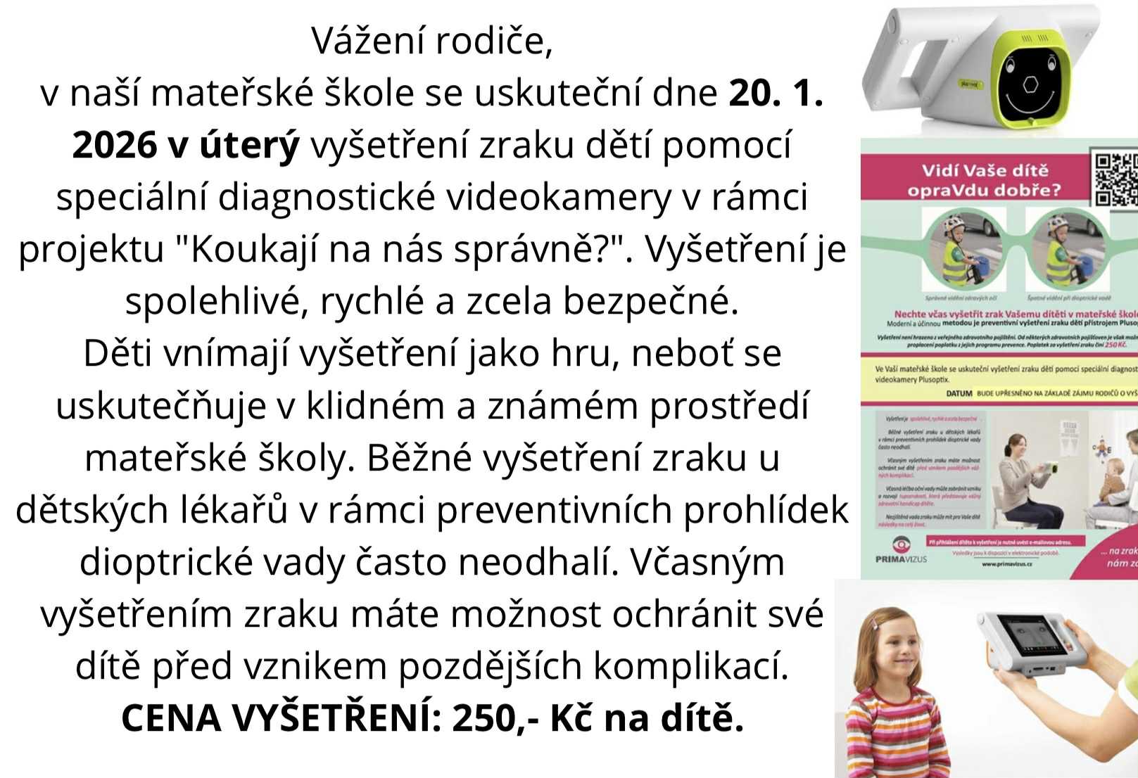penízky za vyšetření očí budeme od přihlášených dětí vybírat do pátku 16. 1. 2026.