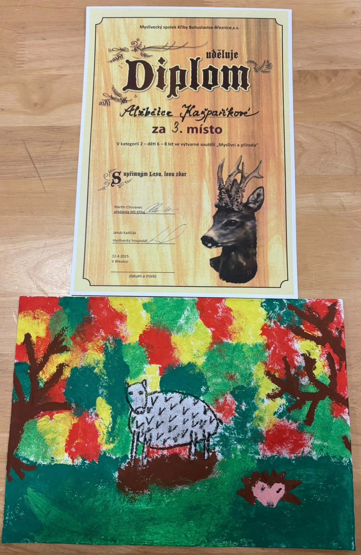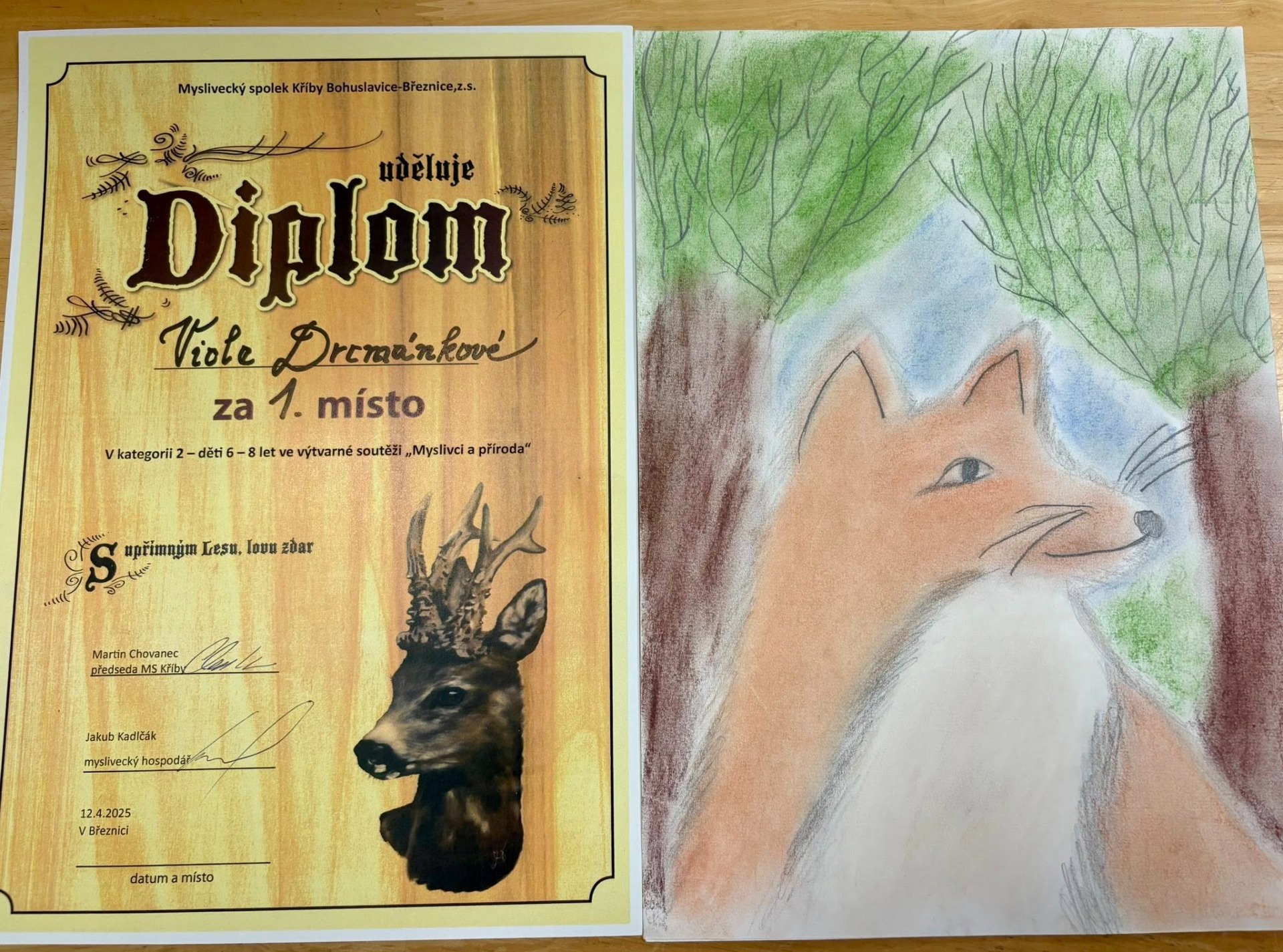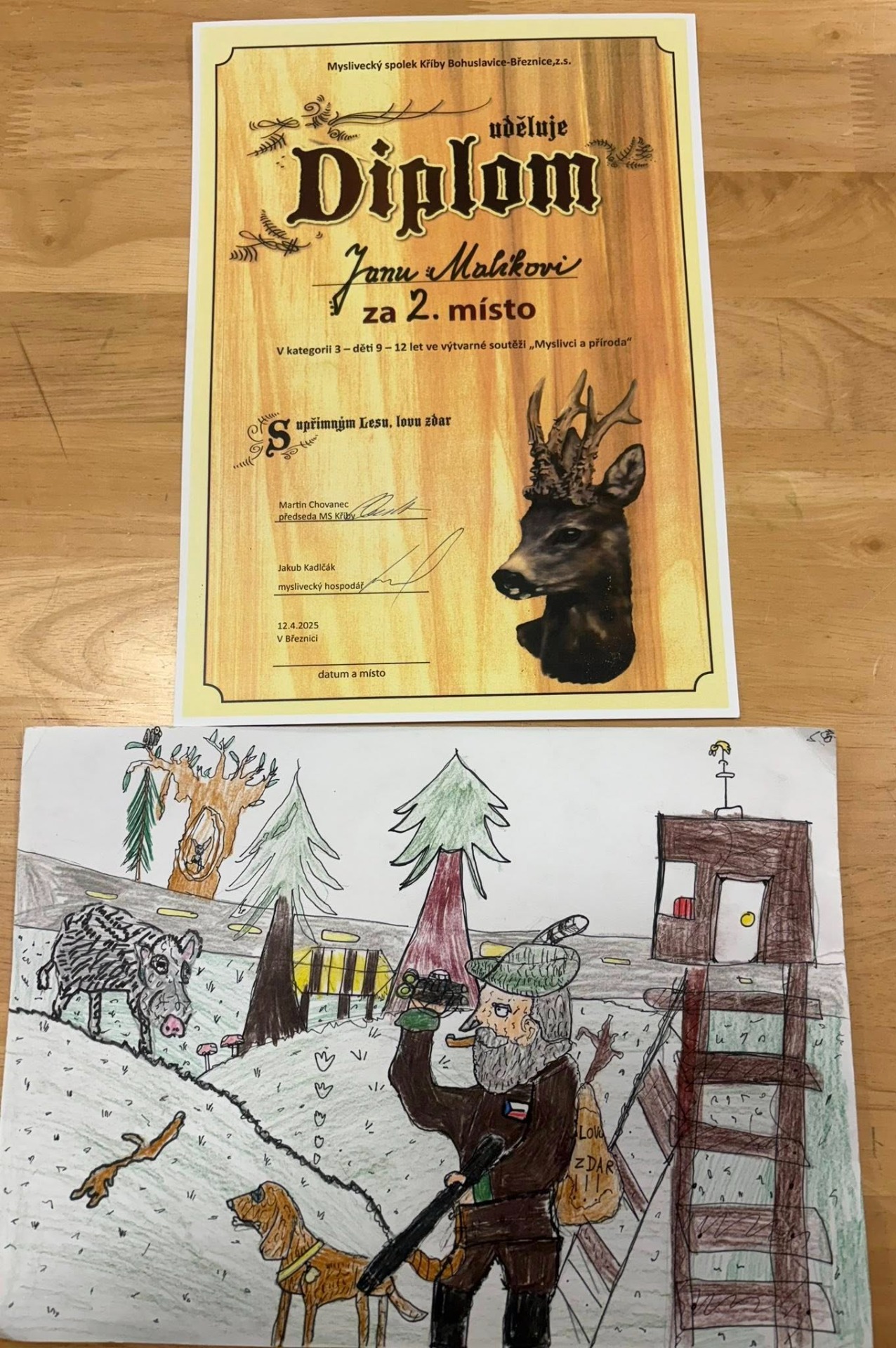 V dubnu 2025 si žáci naší školy připravili výkresy do výtvarné soutěže pořádané MS Kříby Bohuslavice-Březnice při akci pro propagaci a osvětu myslivosti.